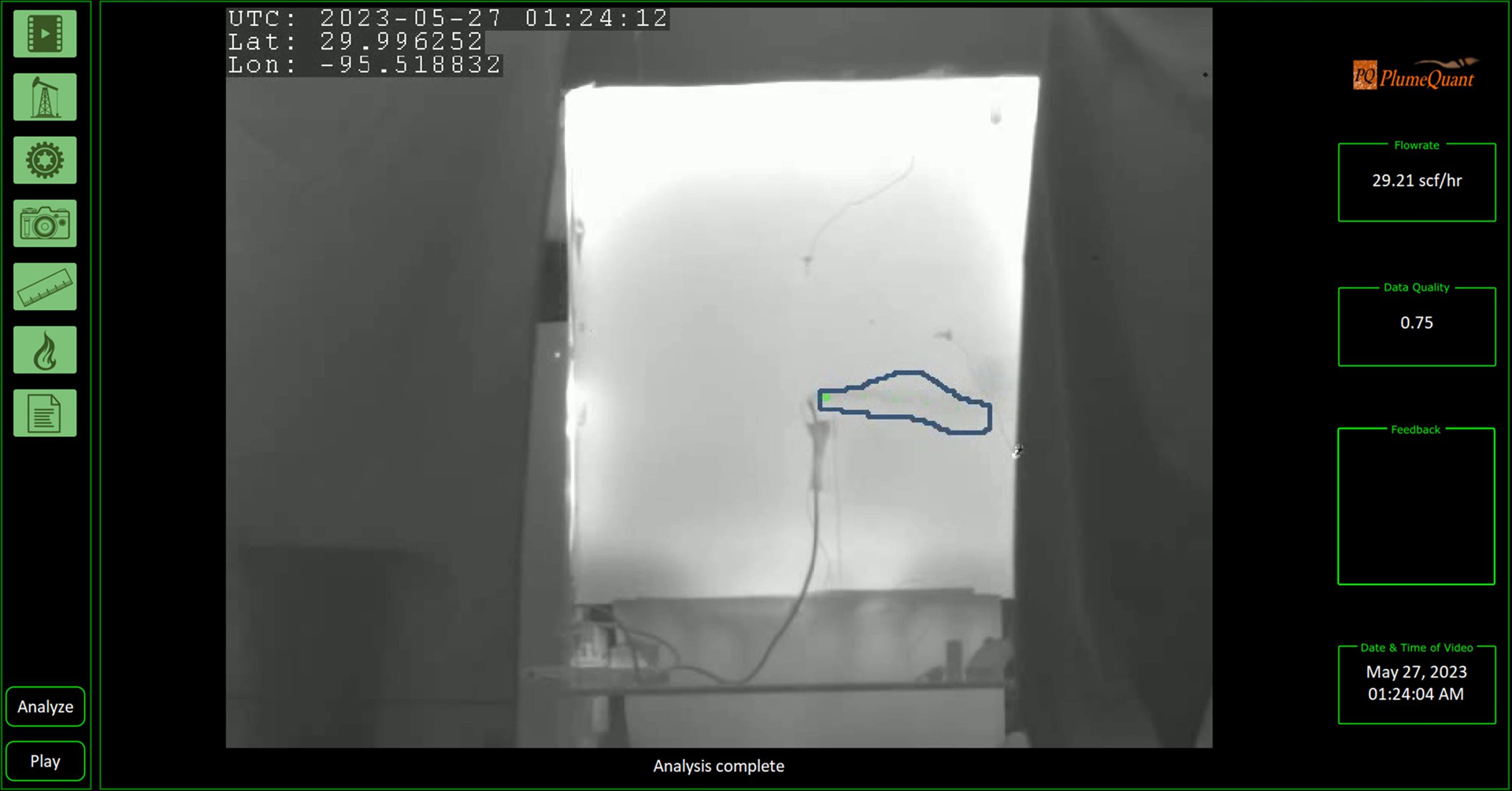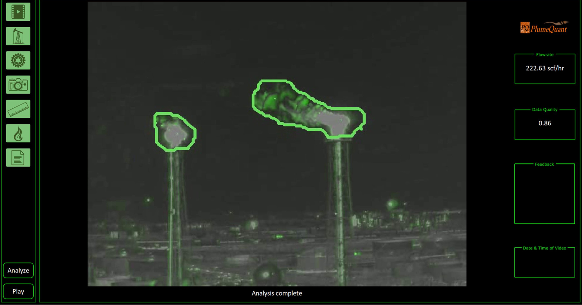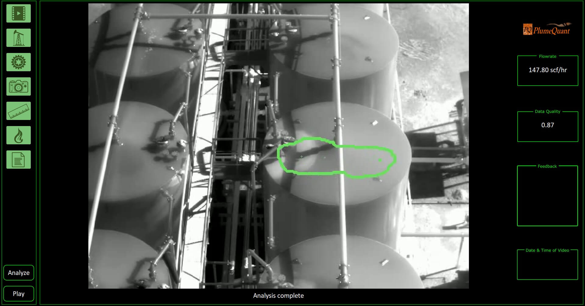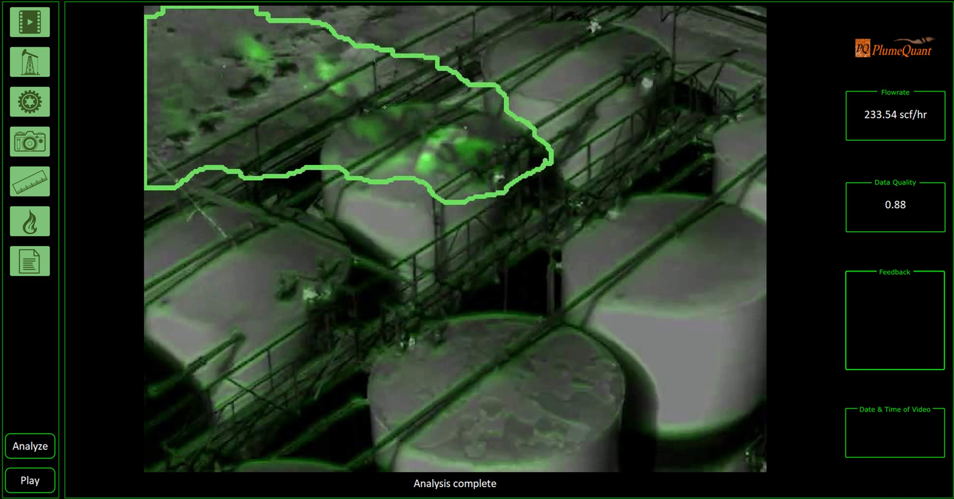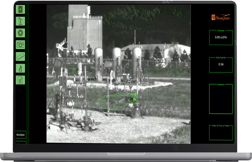 PlumeQuant* is an analytic tool run from a cloud server laptop or edge device, that combines AI-CV, human intuition and gas physics to calculates an emission rate. It is available in three modes: